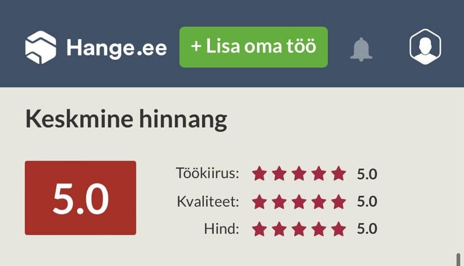 “Väga rahul teenusepakkujaga, töö kiire, korralik, professionaalne, suurte kogemustega meister, kõik sujus plaanipäraselt”